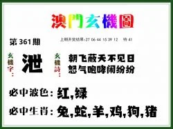 361期澳门关门联:头上戴冠是何肖,牛虎马猴是特码。解 [头] [3754]